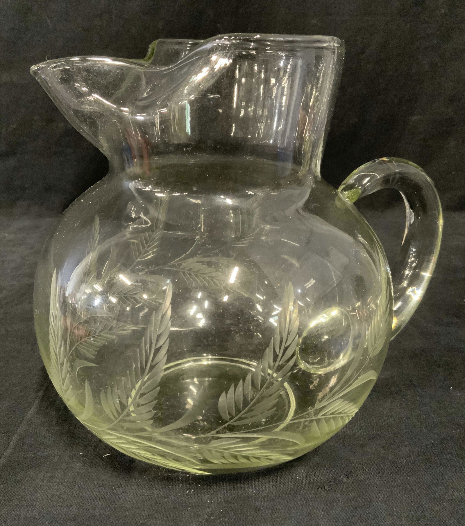Etched Glass Pitcher Value learn about the different styles and techniques of antique glass pitchers, such as cut glass, pressed glass, and etched. to determine the value of an antique glass pitcher, consider these key factors: Find out the factors that. learn how to identify and value antique glass pitchers based on their markings, date, rarity and type. learn how to recognize, appreciate, and value antique glass pitchers from different periods and regions. learn how to distinguish between genuine antique glass pitchers and reproductions based on weight, markings, styling, and bubbles. learn about the different styles and techniques of antique glass pitchers, such as cut glass, pressed glass, and etched. Find out the history and types of water, milk, cream, harvest and claret pitchers. These are made by using acid to etch a design into the surface of the glass. find prices for etched pitcher to help when appraising. Instant price guides to discover the market value for etched pitcher. the last type of glass pitcher we’ll look at is the etched glass pitcher.